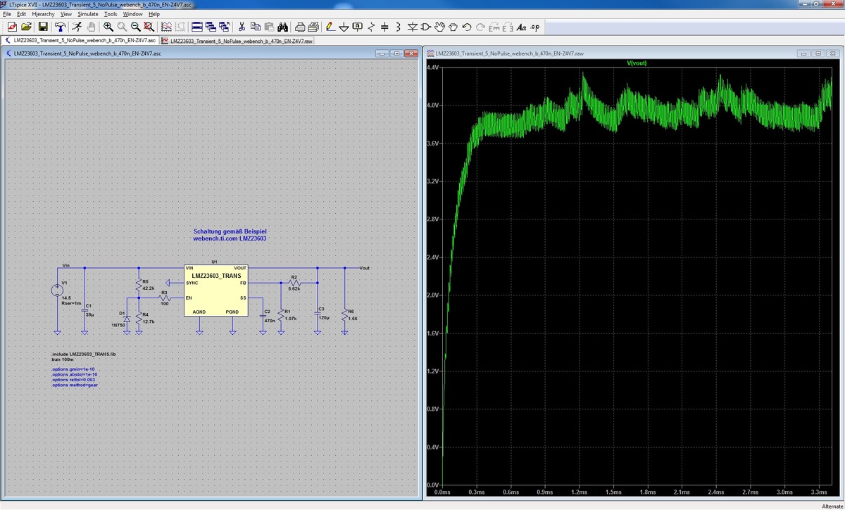 Aber TI bietet auch für den LMZ23603 ein Unencrypted PSpice Transient