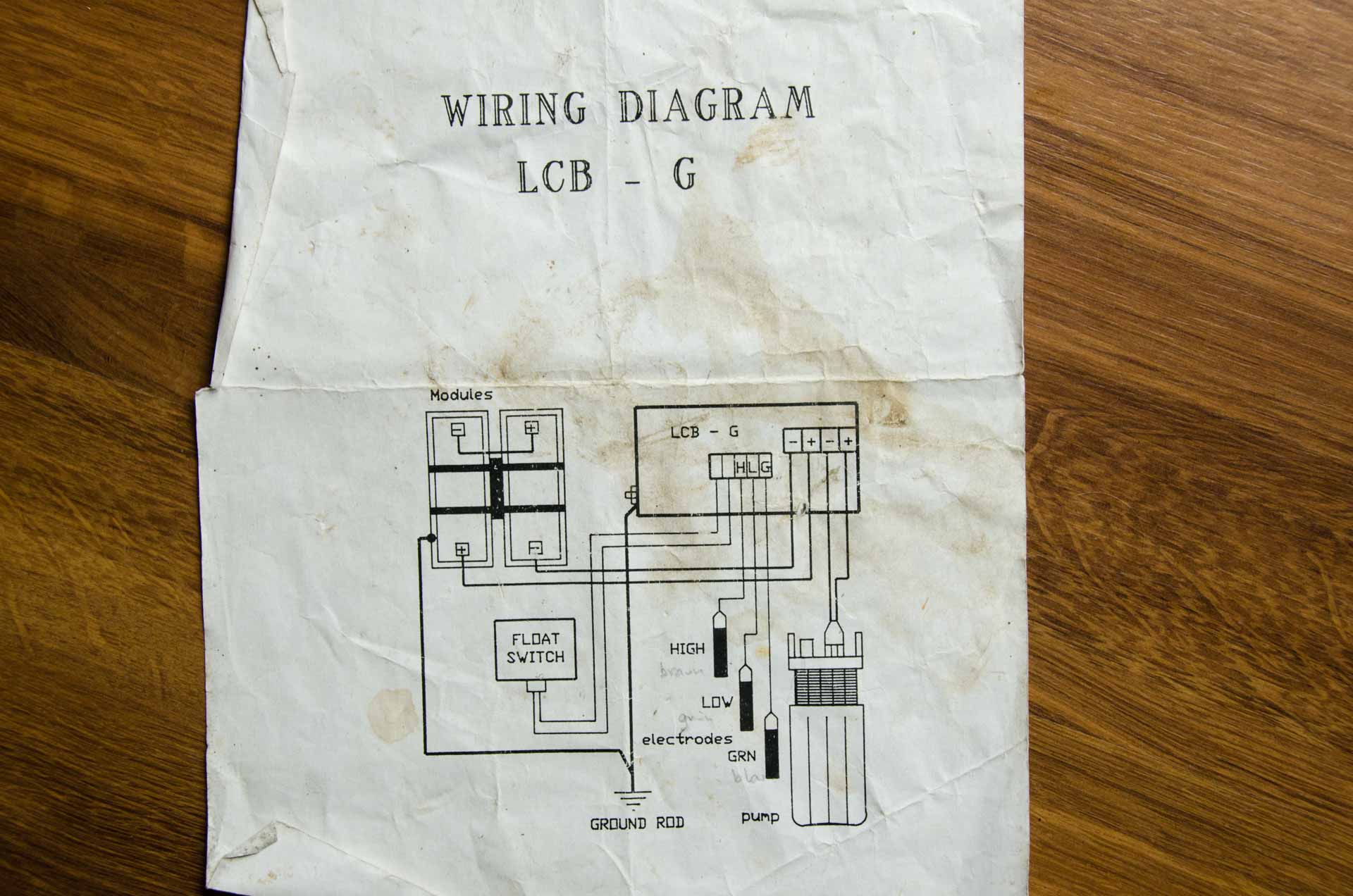 Der Controller ist ein LCB-G Pump Controller. Im Anhang Innenleben, Verkabelungsdiagramm und techn Daten.