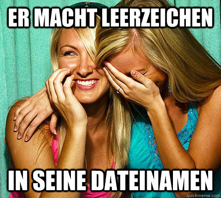Al. K. schrieb: > ..Tiefstrich > Ist eine steinalte Angewohnheit! .. die in der Computerei so manchen Ärger erspart. Bis auf ein paar, die ich übersehen habe, gibt es bei mir in Dateinamen und -Pfaden keine Leerzeichen und keine Umlaute.