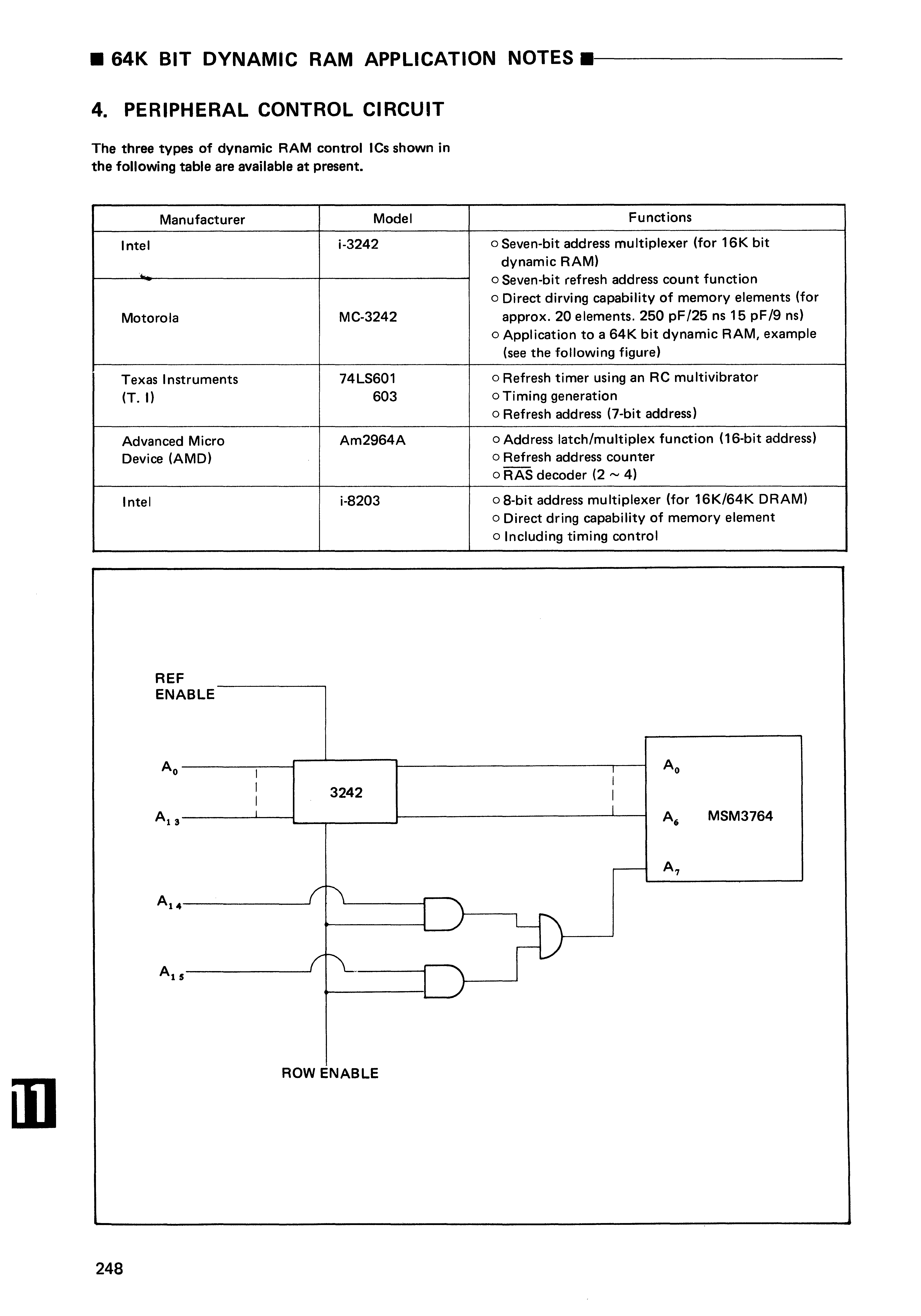 Die 32kByte Speichererweiterung für meinen Rockwell AIM-65 von 1979 habe ich mit 16kbit-DRAMs und einem DRAM-Controller von Intel aufgebaut. Der sorgte für den Refresh, sodass sich das Ram für den Prozessor wie ein statisches Ram verhielt. Die Typbezeichnung fing mit D an, eine vierstellige Zahl danach, mehr weiß ich nicht mehr. Kann aber das Ding mal rauskramen, falls ein historisches Interesse daran besteht. Die Schaltung benötigte eine ganze Europakarte.
