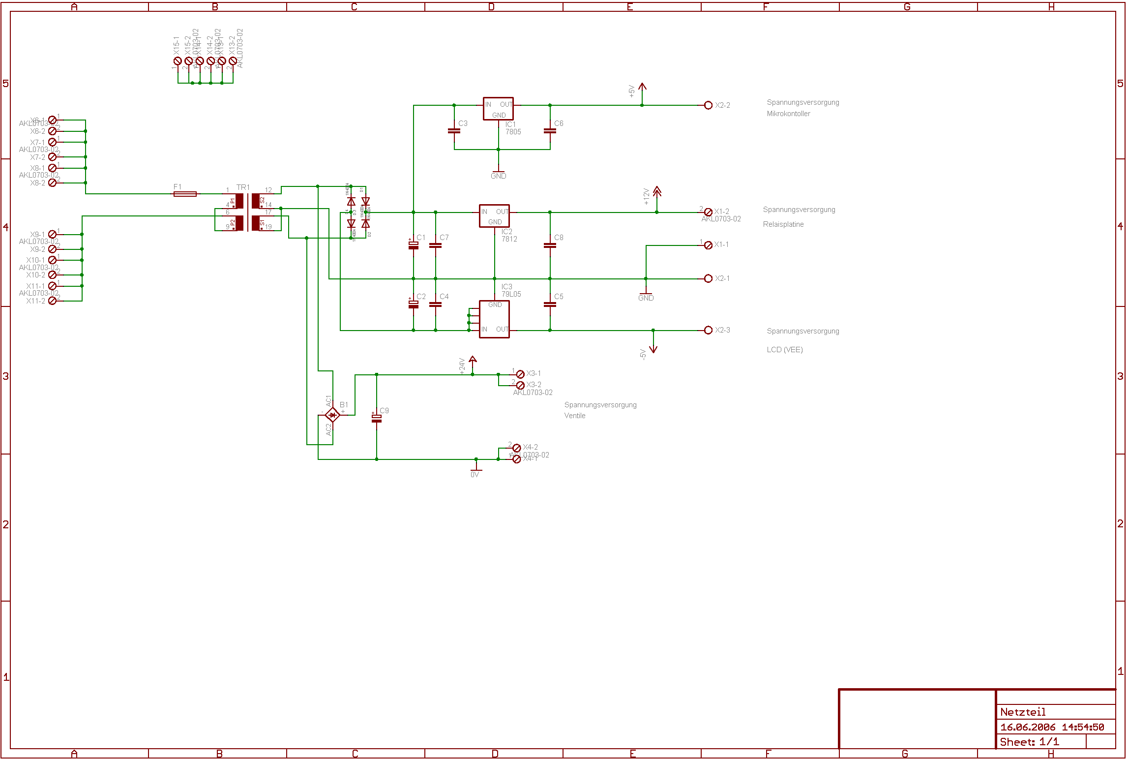 Hallo! Das mit den beschalten der Spulen ist schon richtig so, weil beim ersten mal gleich die Sicherung geflogen ist. Dann erst mal Datenblatt angeschaut (schäm). Hab hier mal das Datenblatt angehängt. Das Netzteil soll 12V, 5V, -5V liefern sowie 24V ungeregelt aber da muss ich noch ne Z-Diode einbauen, da wirklich 40V anstehen.