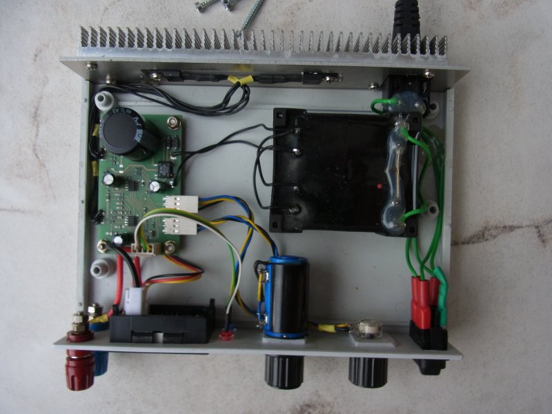 L. N. schrieb: > Durchaus, aber ohne genauem Schaltplan (inkl. Bauteilwerten) werde ich > das im Leben nicht (nach-)bauen können. Dann kaufe dir ein fertiges Labornetzgerät. Grund: Es ist sowas immer ein Teil, wo man mit Netzspannung zu tun hat und da sollte man wissen, was man tut BEVOR man es tut. Ich häng dir mal ein paar Bilder dran. Das ist so etwa das, was du zu bauen gedenkst: einfach gehalten, 15 Volt 1 Ampere, Spannung per Zehngangpoti einstellbar, Strom per einfachem Poti. Schau dir die Raumaufteilung an: die Netzseite weit weg von allen Kleinspannungs-Dingen, ein voll vergossener und schutzisolierter Leiterplattentrafo (auf Boden aufgeschraubt), Netzbuchse und Primärseite mit Heißkleber abgedeckt, vollisolierte Steckhülsen am Schalter. Die Schaltung ist ähnlich der Schaltung aus dem Eröffnungspost dieses Threads (aber nicht GLEICH): Beitrag "Labornetzgerät - Fragen zum Schaltplan" Das ist kein "Super"-Netzteil, sondern eher was Bescheidenes, aber es ist in seiner Art unkompliziert und recht nachbausicher. Ich habe vollisolierte LM317 und Leistungs-FET benutzt. Das Zehngangpoti (4mm Achse), die Drehknöpfe und das U/I-Instrument stammen aus China per ebay, Gehäuse von TME, Kabel+Netzbuchse und anderes Poti von Pollin, die übrigen Teile irgendwo her per ebay, Kühlrippen von der letzten Hamradio. Also, plane systematisch, denn es soll ja kein Steckbrett-gefummel werden, sondern ein richtig benutzbares Gerät - und es soll sicher in der Benutzung sein. Das sind alles Themen außerhalb des engeren Stromlaufplanes. W.S.
