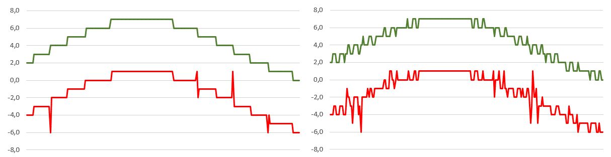 Dieter W. schrieb: > Worin liegt denn bitteschön funktionsmäßig der Unterschied ob ich meine > 8 Signale auf ein R2R-Netzwerk oder einen (mindestens) 8 Bit DAC mit > parallelen Eingängen gebe? Aber du hast an sich Recht, idealerweise kommt an beiden Ausgängen genau das selbe raus (bei perfekten Widerständen und Treibern), und beide Lösungen haben die gleiche Funktion.