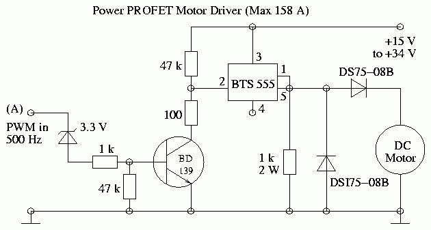 @Relais (Gast) >auf dem Schaltplan ist eine Zener-Diode? verbaut. Kann mir jemand den >Sinn von der Diode erklären? Den wüßte ich auch gern. Die ist eher kontraproduktiv. Ebenso wie die Längsdiode am Ausgang vor dem Motor. Einzig die Freilaufdiode zwischen Ausgang und Masse ist notwendig. Ebenso sind die 47k überflüssig (man könnte ja mal die Bauteile mit Namen versehen), denn der BTS555 hat intern dort schon einen Pull Up in Form einer Konstantstromquelle. Bestenfalls die 100 Ohm sind sinnvoll, um bei Falschpolung den kleinen Transistor zu schützen.