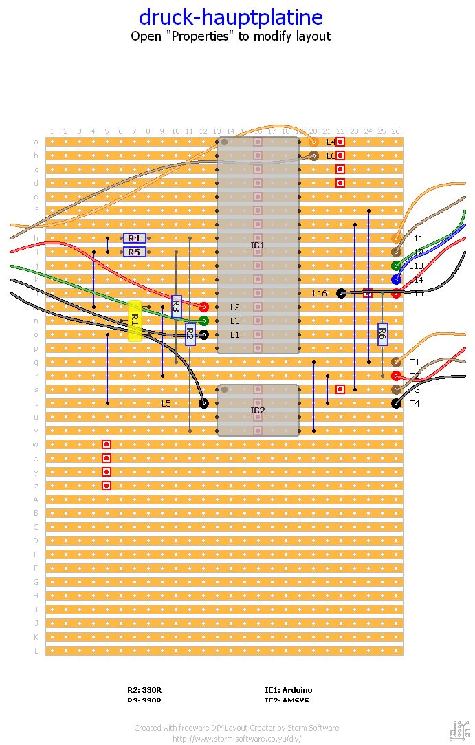 Hallo, ich habe vor längerer Zeit ein Programm zum Zeichnen von einfachen Streifenplatinenlayouts verwendet, das ich wohl zusammen mit meinem alten Rechner versehentlich "entsorgt" habe. Ich wollte es gerne auf meinem neuen Rechner installieren. Mit Freund Google habe ich zwar einige Lochraster- und Streifenrasterprogramme gefunden, aber leider nicht das gewünschte. Auch in diesem Forum wurde ich nicht fündig (oder habe schlecht gesucht ;-( ). Ich lege mal ein von diesem Programm generiertes Bild bei, vielleicht weiß ja jemand von Euch, welches Programm dahinter steckt. Ich meine, es war ein Windows-Programm, welches mit wine auf Linux lief. Danke!