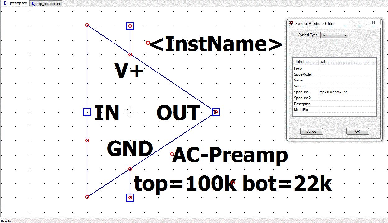 Hallo, wenn du von einem Schaltplan ein Symbol machst, dann nennt man das in LTspice hierarchischer Schaltplan. Ähnlich wie mit klassischen textbasierten Subcircuits kann man auch hier Parameter übergeben. Dazu habe ich vor langer Zeit mal ein Beispiel für die LTspice-Yahoo-group gemacht. https://groups.yahoo.com/neo/groups/LTspice/files/%20Examples/Educational/Hierarchical%20Schematic%20%28preamp%29/ https://groups.yahoo.com/neo/groups/LTspice/info Das Bespiel habe ich angehängt. Gruß Helmut