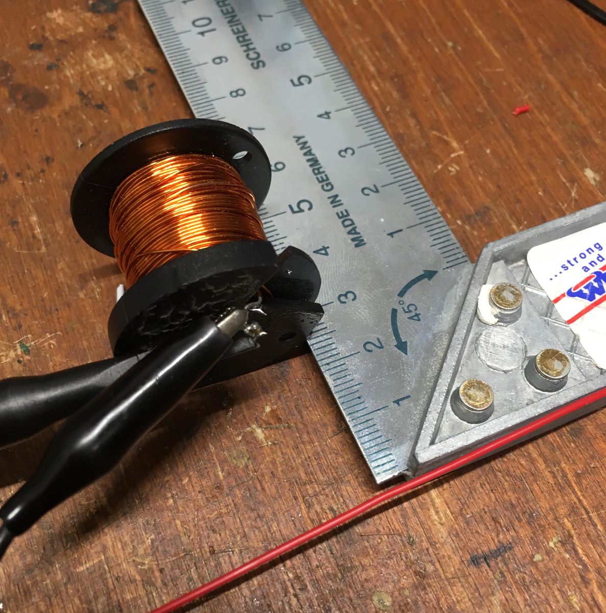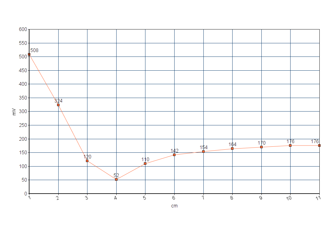 Moin! Ich möchte einen Roboter bauen der einem Draht folgt. Dafür habe ich zwei Schwingkreise (Spule+Kondensator) vorgesehen welche rechts und links vom Draht am Fahrzeug sitzen und den Abstand zum Draht erfassen sollen. Zum testen habe ich mal einen Schwingkreis genommen und ein Draht + Lastwiderstand mittels Audioverstärker mit einem 18khz Sinussignal verbunden. Das entspricht in etwa der Resonanzfrequenz des Schwingkreises. An dem Schwingkreis lässt sich wie zu erwarten ebenfalls ein Sinus messen, sofern das ganze in die Nähe des Drahtes gerät. Ich habe mal die Peak to Peak-Spannung gemessen und dabei den Schwingkreis immer weiter vom Draht entfernt. Was ich jedoch nicht verstehe ist dass die Spannung erst wie zu erwarten abfällt und dann jedoch wieder leicht ansteigt! Wieso ist das so? Damit lässt sich ja nicht wirklich gut arbeiten. Eine Krumme kurve lässt sich ja ausgleichen aber sowas? Herzlichst A.B