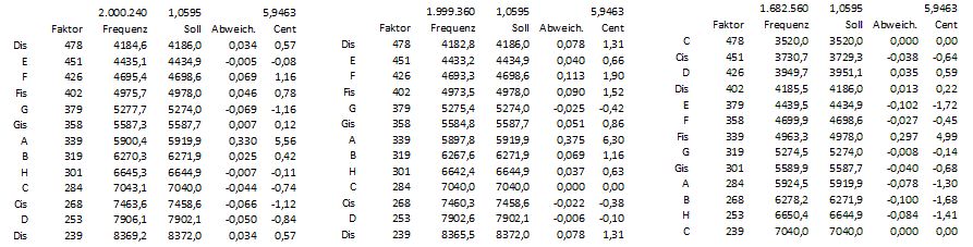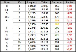 2er-Potenz ergibt ne gleichstufige Stimmung. Z.B. 2000240Hz/284/16 =