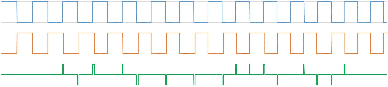 Eine Inputclock von 2MHz wird in 13 Ausgangssignale mit 50% duty cycle