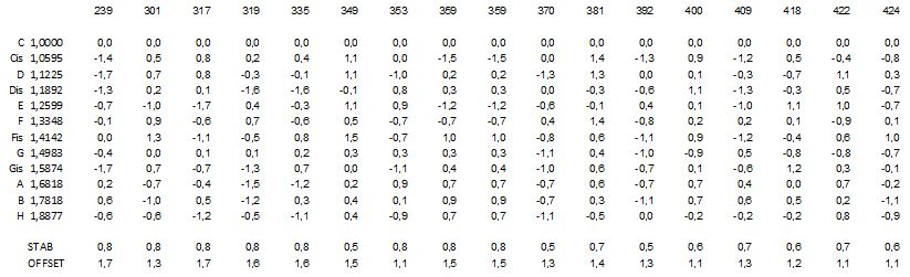 dabei der Lageoffset gegenüber dem absoluten Ton und zudem die