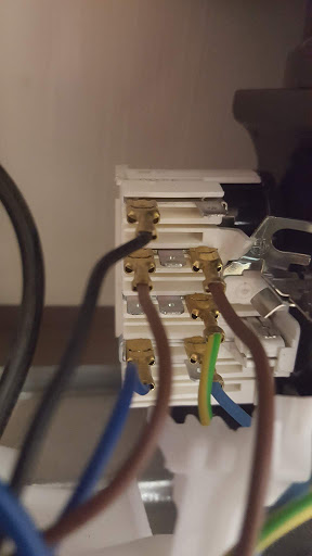 Achtung!!! Was Du da tust ist lebensgefährlich!!! Der gelb/grüne Anschluss muss auf die Klemme mit dem Erdsymbol. Das war bei Deinem Anschauungsmuster sicher nicht anders. Schau da besser nochmal nach! Braun ist normaler Weise Phase (spannungsfuehrende leitung), Blau ist Neutral-Leiter (Neutral-Leiter). Also vor dem Anschluss an die Steckdose unbedingt von jemandem anschauen lassen, der sich wirklich auskennt. Du scheinst da nicht so richtig Ahnung zu haben Hoschti