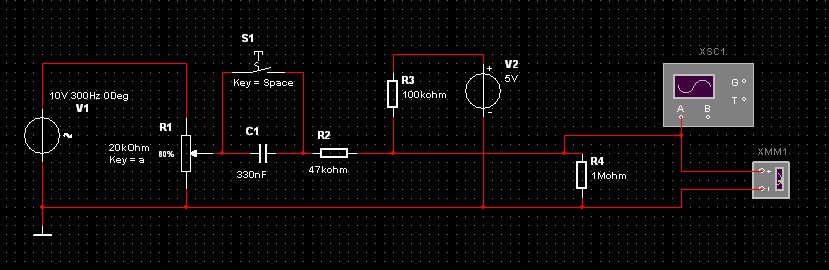 Wetten das ich was einfacheres habe. Am Eingang siehst du ein Poti als Spannungsteiler. Damit werden aus +-10V dann +-1V. Den Kondensator als Differentierer, je nach Geschmack, auch dabei als Hochpass. Jetzt kommt noch ein Spannungsteiler. Über R2 fließt der Strom der Signalquelle nach R4. Über R3 fließt ein weiterer Strom über die Hilfsspannung nach R4. Wird der zweite Spannungsteiler korrekt ausgelegt, dann gibt es keinen 'negativen' Strom über R4, da der Strom von R3 in jedem Fall größer als der über R2 ist. --> Man kann eine Spannung größer 0V abgreifen. Mit den Werten musst du ein bisschen jonglieren oder gleich mit Maschensatz das passende herleiten. R4 soll der Eingangswiderstand des MC sein. Die Hilfsspannung habe ich über eine 9V Batterie mit nachgeschalteten 7805 ohne jeglichen Kondensator realisiert. Da fast kein Strom fließt, hält die Batterie ewig.