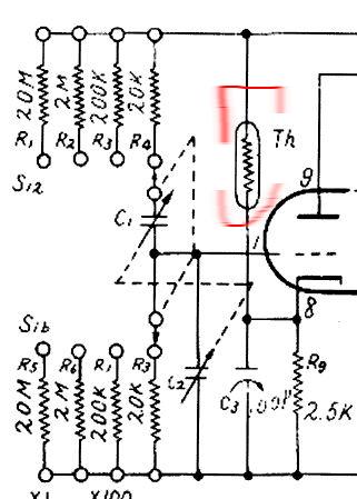 Th ist ein Thermistor, also ein temperaturabhängiger Widerstand. Hier ein PTC, kann aber auch ein NTC sein. WuG (Wandel und Goltermann) verwendete einen ähnlichen Kaltleiter, den KL-50/5-9, im Messgenerator MG-47 (KTL-1 KL50 / 5 - 9). Beitrag "Details Wandel und Goltermann WS Wechselspannungsstabilisator WS5 WS6 WS10 und Kaltleiter KL100"