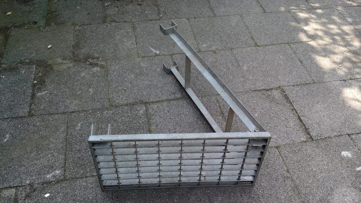 Das Ding ist für den Lichtschacht vorm Kellerfenster. Das Teil, das aussieht wie eine Leiter, dient zur Befestigung. Damit man das Gitter wirklich nur von unten her entfernen kann.