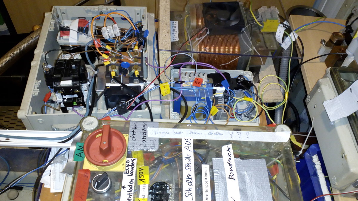 Foto mit Schmelzprobe Foto mit Trafo und Gleichrichter Foto mit Schwingkreis Foto mit IGBT