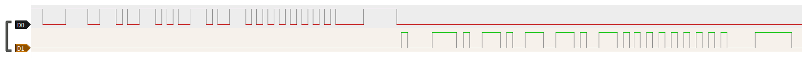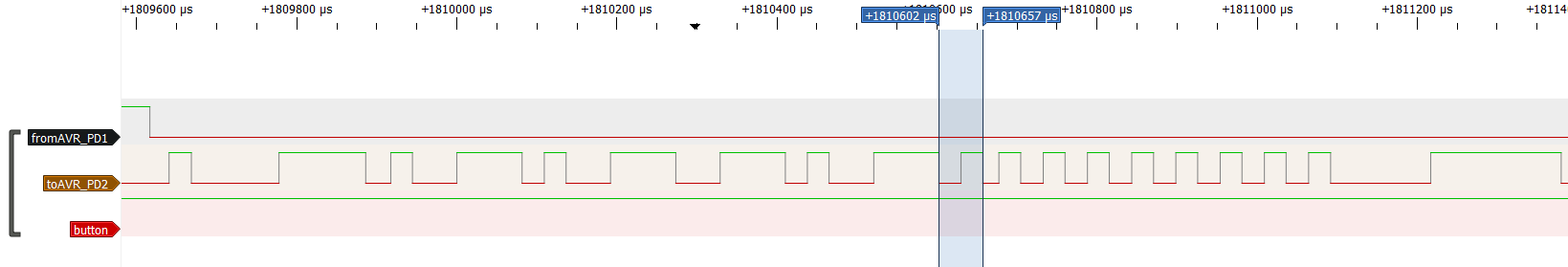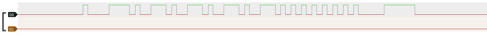 Hallo zusammen, zwischen zwei Mikrocontrollern auf einer mir vorliegenden Platine findet Kommunikation statt, jedoch nur extrem wenig und immer nach dem selben Muster. Es gibt kein Taktsignal, nur zwei Leitungen die allen Anschein nach RX und TX sind. Die Mikrocontroller sind einmal ein ATmega 32 und einmal ein STC 15L104W, verbunden sind P3.3 (STC) mit PD1 (ATm) und P3.2 mit PD2. Ich erwarte keine Wunder, aber kommt euch das irgendwie bekannt vor? Irgendeine Vermutung? Für mich sieht das nicht nach UART aus, ein anderes ohne extra Taktsignal kenne ich leider nicht. Beste Grüße, Flo