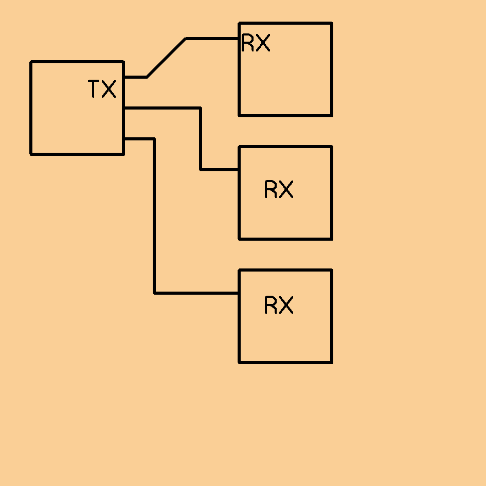 Willst du nun RS232 oder direkt? RS232 ist die Version mit +/-12V, da wär's besser, an den Tx-Pin erst mal einen Sender (Transmitter) und keinen Empfänger (Receiver) dran zu hängen. Anonsten hängt das eher von der Leitung ab. Der Pin selbst verkraftet mehr Empfänger als du freiwillig zu verarbeiten bereit bist.