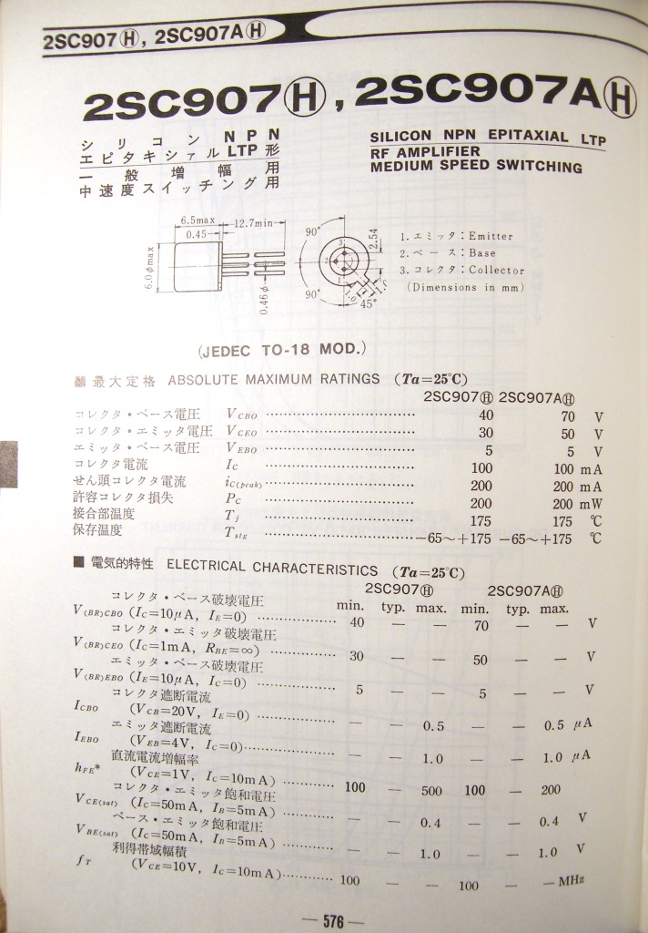 Hallo, viel mehr wirst Du im Netz auch nicht finden, die sind zu alt und eigentlich auch nur als Museumsstücke zu gebrauchen. Beim 2SC907 wird es ähnlich aussehen: https://alltransistors.com/transistor.php?transistor=17275 Gruß aus Berlin Michael