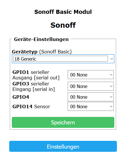 Hallo liebe Leute, ich habe auf einen Nodemcu mittels der ATOM IDE eine eigene .bin erstellt. Eingebunden habe ich den Branch: development https://github.com/arendst/Sonoff-Tasmota Wenn ich nun nach dem flashen der bin Datei in den ESP werden in der Weboberfläche in der Geräteeinstellung immer nur 4 GPIO's angezeigt. Egal welcher Gerätetyp ausgewählt wird. Muss ich noch im Quellcode in der user_config.h noch was auskommentieren? Oder was muss ich tun das unter Generic alle GPIO's verfügbar sind?