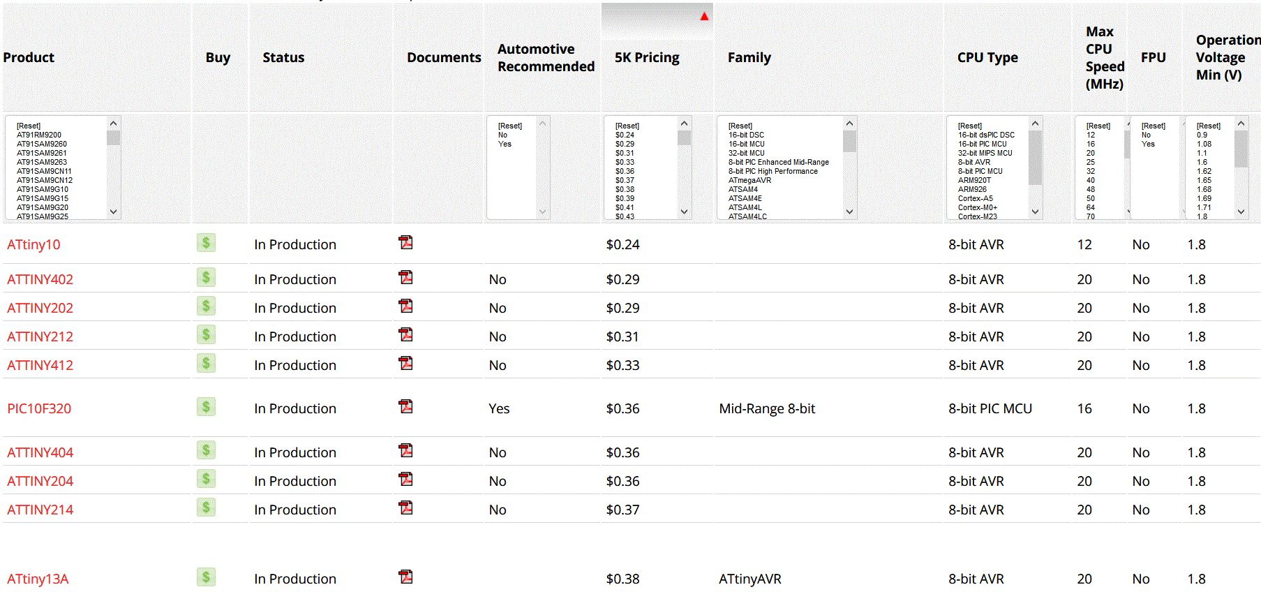 Sortiment von Padauk, einer mit doppelt so viel RAM, OTP, Takt kostet