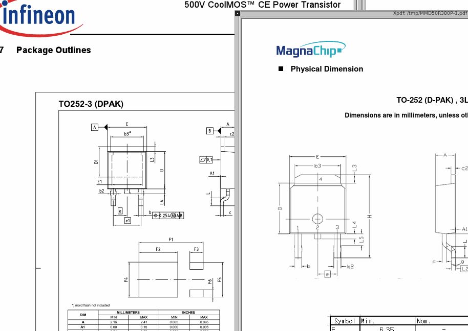 Magnachip hatte ich auch schon gesehen. Allerdings heißt der MOSFET bei denen "MMD50R380P". Wir vermuten, dass die vorangestellten Zeichen etwas mit dem Hersteller zu tun haben, von denen es möglicherweise mehrere gibt.