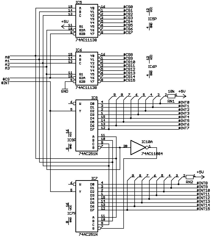 moin moin, laut Datenblat liegt die max. Taktfreq. des 3100 bei 4,2MHz. In dem splitting des INT sehe ich keinen Sinn. Die Ansteuerung des Decoder/Multiplexer erfolgt binär, also ist doch die Adresse des INT bekannt. Mit Gruß Pieter