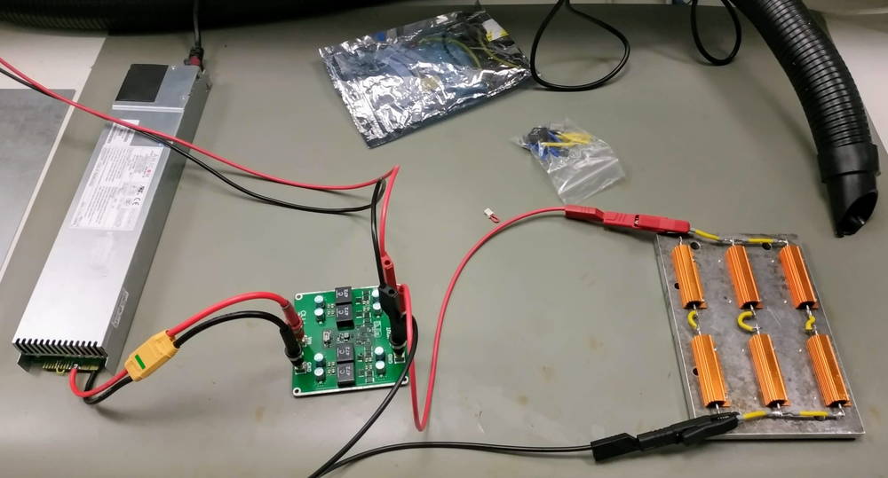 Nachtrag: Last kann ich derzeit nur bis 150W einstellen, da kommt die Tage aber noch Material für mehr (rein resistive) Last. Eingangsseitig habe ich 12V 66A ausm Netzteil 10s4p LiIon Und klassische 30V 5A Labornetzteil @Klaus, ja das ist bekannt, kann aber nicht oft genug betont werden. Danke für den Einwand. :)