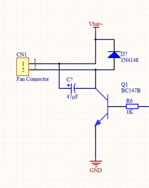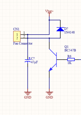 Peter H. schrieb: > Hier der Schaltplan Da sind Pin 1/2 kurzgeschlossen?! Wenn muss der C parallel zum Lüfter. Parallel zum Transistor wäre dessen Tod!