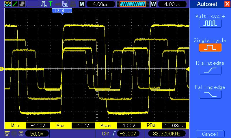 yxcv schrieb: > Das Gerät mag es nicht, während einer Halbwelle schnell eingeschaltet > zu werden - der Oszillator möchte gerne den sanften Sinus-Anstieg. Genau, das ist der Grund auf einem Oszi Bild war das Einschwingverhalten zu erkennen. Die meisten Phasenanschnitte sind hier zu steil und mögen daher auch keine kapazitve Lasten, wie die Kondensatoren auf der Primäseite des Schaltnetzteiles.