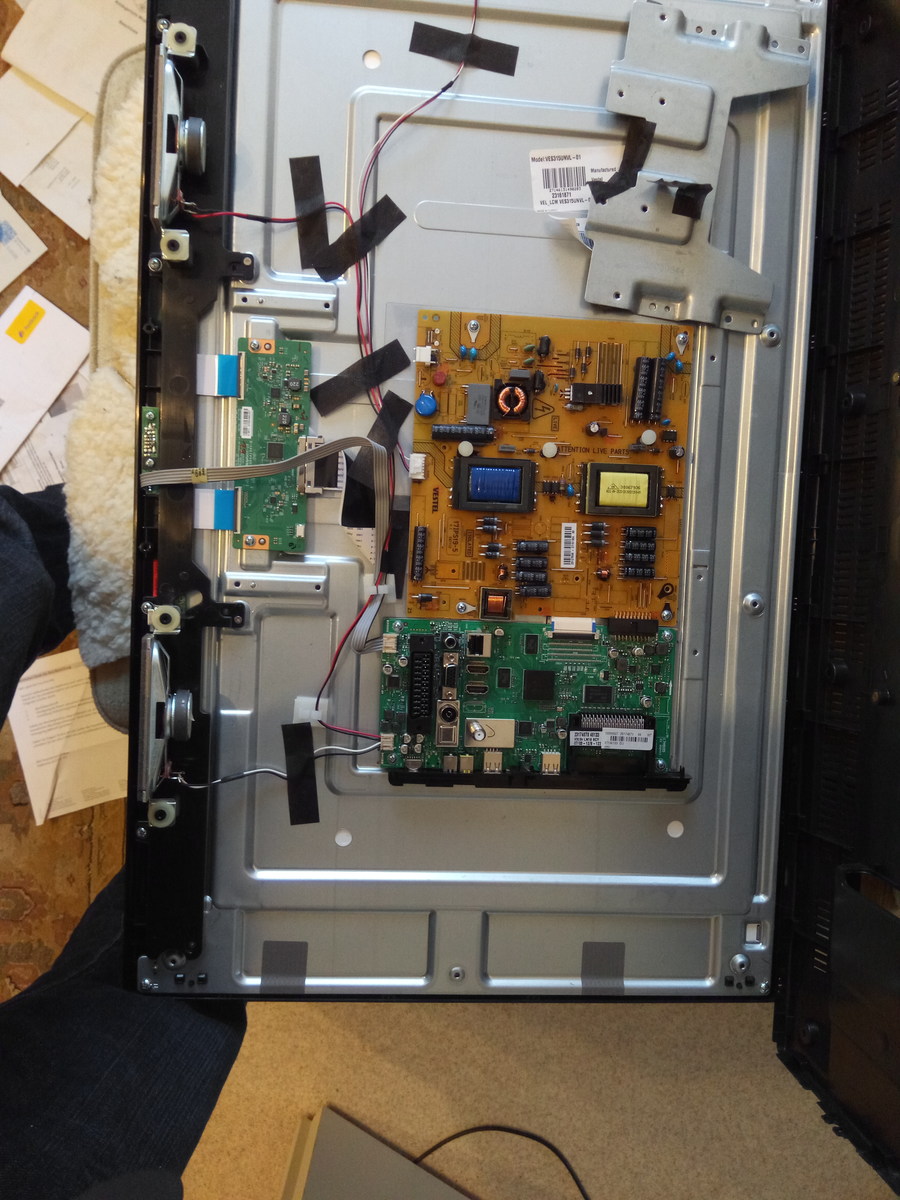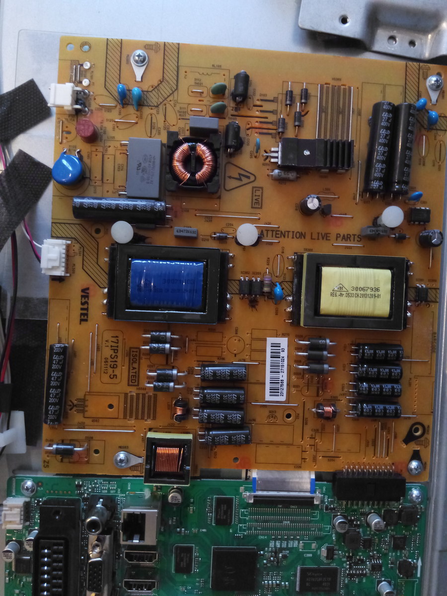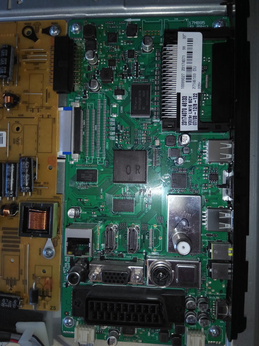 Guten Tag, der besagte TV zeigt kein Bild mehr an , lässt nur Raster erkennen. Habe zwei Videos vom Problem: https://www.dropbox.com/sh/xem6cds7hhk929a/AAAwZIO0QG20DZmEqRXWOLEda?dl=0 Es gab zwischenzeitlich in ca.8 Sekunden Abständen wiederholtes Blitzlicht, der ganze Schirm flackerte extrem hell auf. Netzteil ist ein Vestel 17ips19-5 v.1 061112. Steuerplatine eine Vestel 17mb95 r3 050413. Optisch keine Defekte erkennbar! Laufvideo: https://www.dropbox.com/sh/xem6cds7hhk929a/AAAwZIO0QG20DZmEqRXWOLEda?dl=0 Wo kann ich ansetzen und ist es ggf. möglich eine 32 zoll toshiba platine mit gleicher bezeichnung zu verwenden? Mfg jan