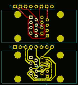 Wenn ich das richtig sehe, willst du sowas wie das hier, oder? Quick&dirty-Routing, in 5 Minuten zusammengeschustert. Optimieren und schön machen kannst du's dir ja selbst. :) Edit: Kicads Archivierfunktion hatte im ersten Zip-File noch alten Müll eingepackt, hab's nochmal neu hochgeladen.