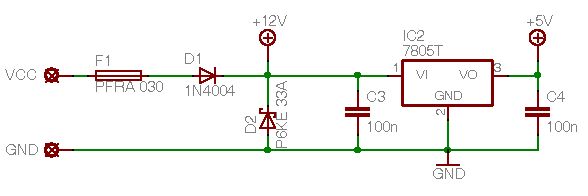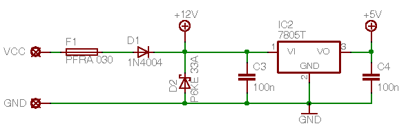 Danke schon mal. Jetzt noch die Frage, ob diese Schutzschaltung so funktioniert, wie ich das will. Also den 7805 vor Vcc > ca. 30V schützen. Leider gibt mein Netzteil nur 30V ab, so daß ich das nicht mit dem vorhanden P6Ke 33A testen kann. Wäre ja doof, wenn meine Schutzschaltung nachher nicht schützt...