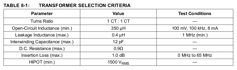 Moin, ich bin gerade auf der Suche nach einem passenenden 10/100 Ethernet Magjack für diesen PHY: KSZ8851-16 (Siehe Bild) Was mich wundert ist der angegebene Wert "Interwinding Capacitance: 12 pF max." Ich finde nur in sehr wenigen Datenblättern diesen Wert und wenn überhaupt liegt er bei 25-30. Selbst der im Datenblatt (und auf einem Demoboard verwendete) übertrager H1102NL gibt diesen Wert nicht an. Wie kritisch ist das ganze? Ist im Prinzip jeder Magjack oder Übertrager, der sich als 10/100 bezeichnet und wo die restlichen Werte ungefähr stimmen, akzeptabel?