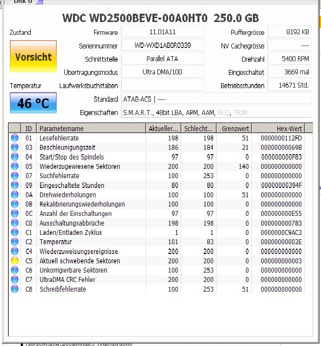 Die HDD hat seit längeren einen auffallend langsameren Datendurchsatz. anbei mal Crystaldisk. Vorsicht ist geboten. Datensicherung ist ziemlich aktuell. Wäre es damit getan die Platte komplett 'von unten' platt zu machen, zu checken, und wieder alles drauf? Das Problem ist, dass dies eine IDE HDD ist.