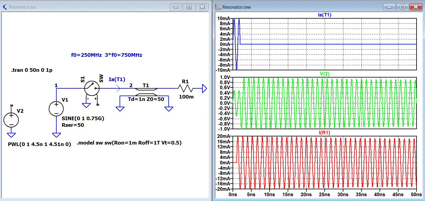 > hinz schrieb >> HST schrieb >> Daher ist die Fragestellung nicht uninteressant. Keine Ahnung, ob ein >> solcher Schwingkreis, z.B. auf 3*f angeregt, evtl. auf die >> Grundschwingung umspringen könnte. > > Nicht wenns ein idealer Resonator ist. Ich habe es gerade mal mit LTspiceXVII simuliert. Die Schwingung auf der 3. Harmonischen beibt immer eine Schwingung mit der 3. Harmonischen. Als Resonator habe ich eine ideale "transmission line" mit Kurzschluss am Ende genommen.