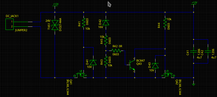 Aktuell verwende ich in einer Schaltung eine einfache Diode zum Verpolschutz sowie den TPS2400 als Überspannungsschutz. Dieser kostet leider im vergleich zu normalen passiven Bauteilen relativ viel (1,70 Chf /Stk bei 10 Stück bei Mouser). Für die nächste Version der Schaltung möchte ich den Verpolschutz mit einem N-Mosfet lösen. Den Überspannungsschutz würde ich neu gerne auf >=14.5V legen, damit (wesentlich) günstigere Tantal-Kondensatoren (16V) verbaut werden können. Ich habe per Google die "Crowbar" Schaltung gefunden, welche sicherlich gut funktioniert, nur finde ich es nicht so toll wenn dann eine Sicherung ausgelöst wird. Die Sicherung soll in Zukunft nur noch auslösen wenn tatsächlich zuviel Strom aus der Schaltung bezogen werden. Im Falle von Überspannung oder Verpolung soll einfach "nichts" passieren. Kann man den Überspannungsschutz auch "analog" preiswert lösen? Das ziel ist hierbei den Preis von ca. 1.50€ unterbieten. Die anderen verbauten Teile in verbindung mit dem IC1 (TPS2400) wie (Q1, T1, R's) dürfen natürlich auch verändert werden. Hoffe auf ein paar konstuktive Ideen! Dankeschön