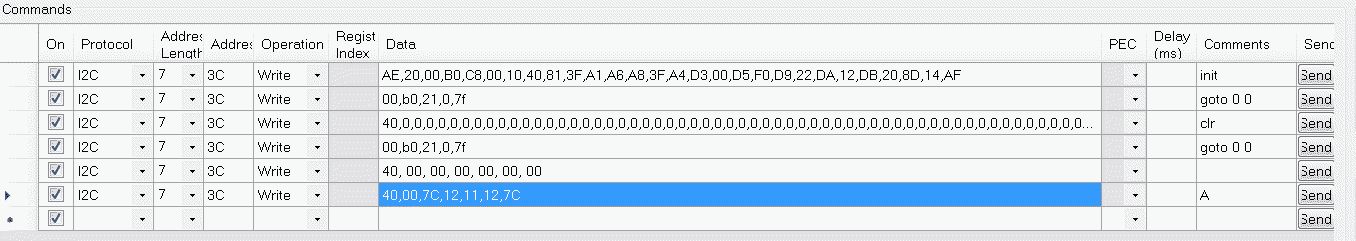 6 | I2cSend(0x3C, gotoXySeq, 5); |