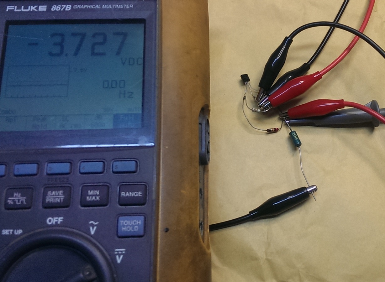 Aus der W. schrieb: > Wenn genug Teile zusammen kommen, bestelle ich die LM4041 > nächste Woche bei RS und hoffe, dass es real so arbeitet > wie im korrigierten Modell. Endlich sind die LM4041 da. Kleiner Drahtigel zum testen. Schaut gut aus. :-) Als nächstes wird die Schaltung da Beitrag "Ich han Fun (mit der Badlüftersteuerung)" auf LM4041 umgebaut. Ich fange mit der Z-Diode unten mittig im Bild an. Mache dann im Nachbarthread weiter. LG old.
