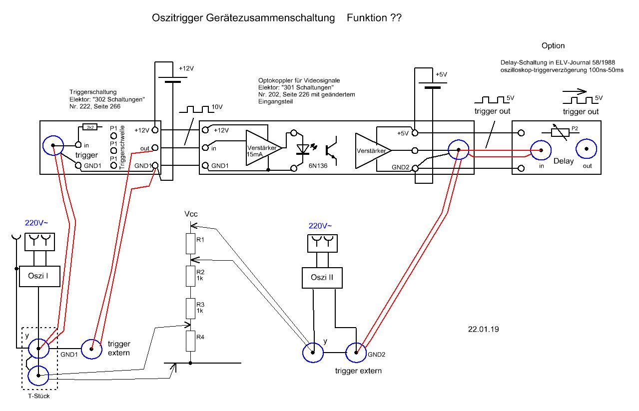 Pechvogel schrieb: > Ganz heikle Sache: Habe mal Messungen an einem Schrittmotor mit 4 > Kabeln > vornehmen wollen, am Ende das das Treiber-IC defekt. Und das gab es > nicht mehr zu kaufen. Das hat in der Folge richtig Geld gekostet. Ja, immer wieder dieser Ärger mit der Masse. Anbei eine Versuchsschaltung für zwei Oszies. Das müßte doch so gehen, oder? Für einen Test muß ich mir noch BNC-Buchsen und Kabel besorgen und ein Gehäuse brauche ich auch. Aber die Triggerschaltung für sich funktioniert schon mal ganz gut.