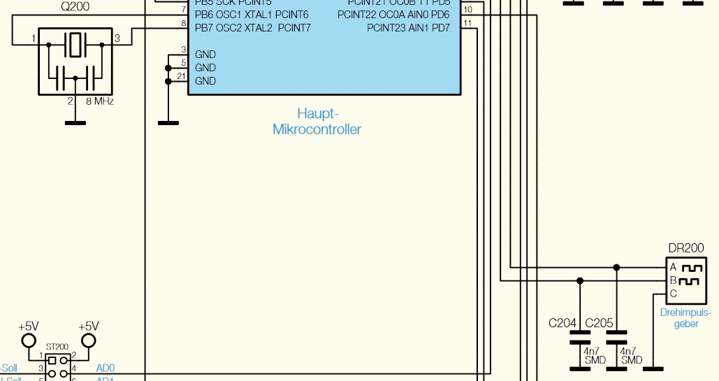 Der Inkrementalgeber des Netzteil zählt nicht mehr korrekt. Manchmal wird erhöht/erniedrigt unabhängig von der Drehrichtung. Kennt jemand das Problem? Was kann ich als neuen Drehgeber nehmen? Im Anhang ein Bild des Drehgebers und seine Anbindung an den µC(ATMega?). Die Bilder sind aus der Bauanleitung des PPS5330 von ELV. Die Bauanleitung(4 MBytes!): https://files.elv.com/service/manuals/PPS5330/PPS5330_KM_G_080303.pdf