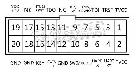 Hallo zusammen, ich wollte meinen STM32F302RBT6 mit einem ST Link V2 programmieren. Ich habe für den 20-Poligen Stecker folgendes Bild, welches ich angehängt habe, gefunden. Stimmt diese Pinbelegung? Ich habe das Bild bei Ebay gefunden. MfG