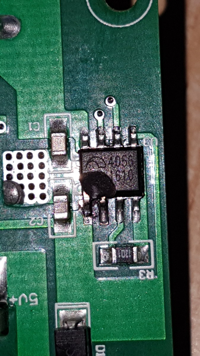 Hallo. Ich biete um Hilfe bei der Identifizierung. Es ist denke ich ein Baterieladekontroller. Die Taschenlampe hat jemand mit mit Spannung höher als 5 Volt geladen und das Teil ist durch. Sie lässt sich nicht mehr laden, aber funktionieren tut sie. Leider finde ich nichts im Internet. Die Zahlen auf dem SMD bringen mich nicht weiter. Auf der Platine steht Bezeichnung "u". Ich hoffe mir kann jemand helfen und danke im Voraus.