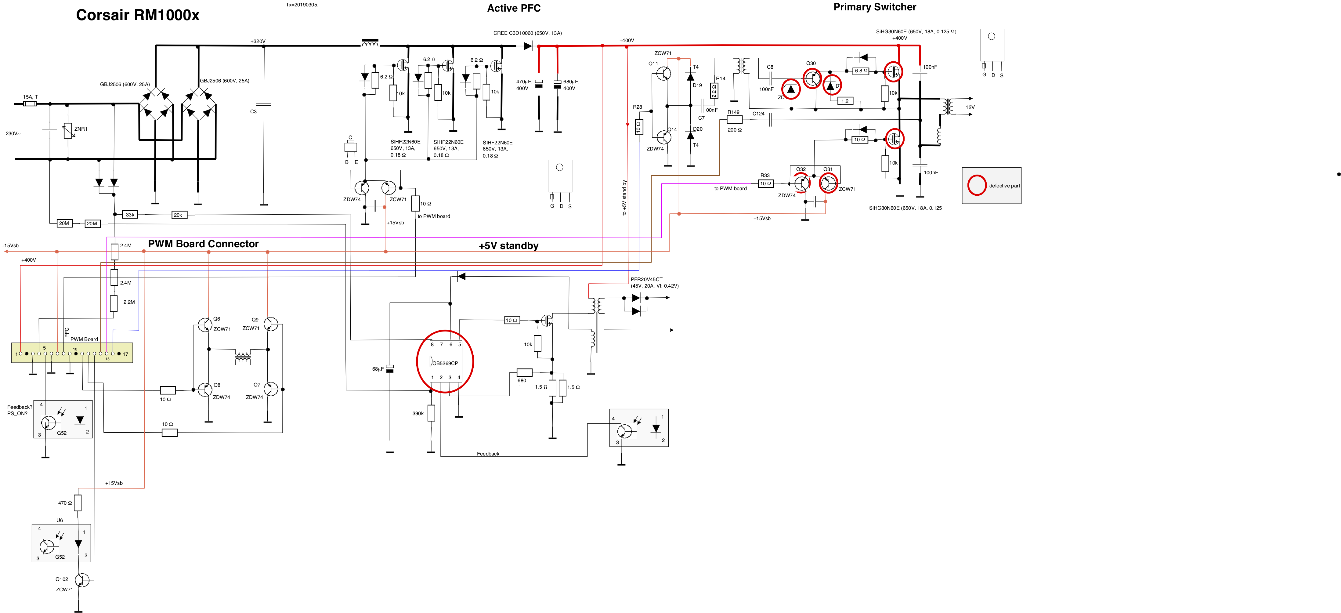 Hallo. Ich habe eine fehlerhafte Corsair rm1000i Source. Ihr Artikel über die Reparatur der Corsair rm1000x-Quelle hat mir sehr geholfen, und deshalb frage ich Sie, ob Sie das gesamte elektronische Schema aus dieser Quelle haben. Danke.