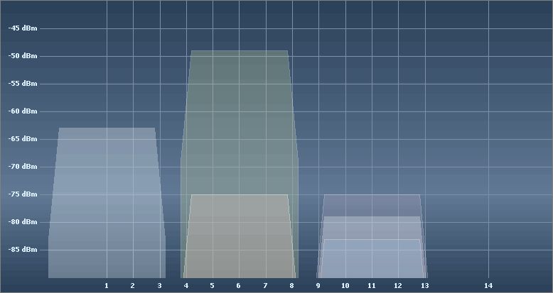 Ach kuckmal, interessant. Ob 12 Jahre alte Infos zu b/g-Netzen mit maximal 54MBit noch auf moderne ac oder n-Implementationen anzuwenden sind, weiß ich nicht. Ich hab aber auch gelernt, das man besser 3/7/11 nutzen sollte, denn 1 würde ja 0 und -1 mitstören, und da sind andere Dienste. 1/2/_3_/4/5, 5/6/_7_/8/9 und 9/10/_11_/12/13 wurde von der ct kolportiert, da moderne Systeme mit den schmalen Kanälen besser klarkommen, und auch "die Lücke nutzen" wurde da genannt. Zum glück lebe ich auf dem Land und habe nur 4 Nachbarn, WLAN-mäßig. Wenn das so aussieht wie bei dir ist es beinah egal, jeder Kanal ist schei*e. Da ist dann mit Standort- und Antennenwahl mehr zu machen.