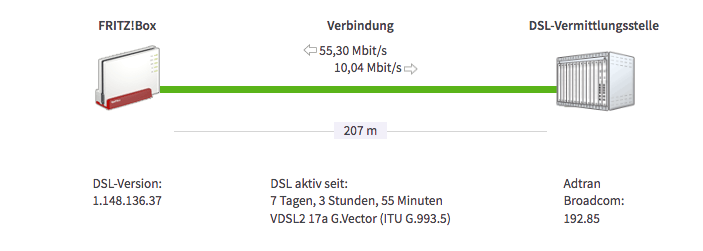 Dein VDSL50 bei 207m Leitungslänge, das kann ich selbst syncen. Mit