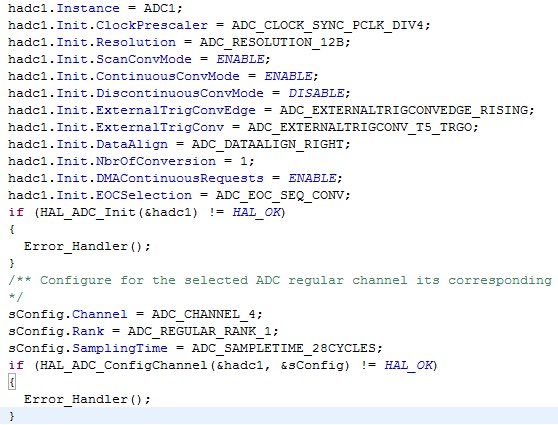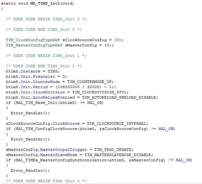 Hallo Zusammen Ich möchte einen DAC in DMA Modus mit exakt 32kHz betreiben. Sprich ich möchte mit dieser Frequenz Werte speichern, währenddessen in den SLEEP mode und ab und zu durch die DMA interrupts die Werte aus dem Buffer verarbeiten. Nun hat dies schon gut geklappt mit full-speed, doch möchte ich jetzt eben die 32kHz. Dazu habe ich conversion mit externem Trigger vom Timer zu implementieren. Allerdings passiert nichts. Kann mir jemand helfen, wie ich das implementieren kann? Oder gibt es eine andere/einfachere Möglichkeit?