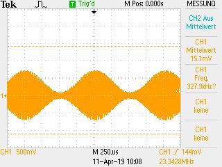 Hast du einen halbwegs normgerechten Messaufbau? Die 1kHz AM sehen aus wie das Störsignal nach IEC61000-4-6. Diese Norm beschreibt aber nur die Durchführung der Messung und die Geräte dazu. Welche Kriterien nach welcher Norm musst du überhaupt erfüllen? Woher bekommt die Schaltung die Rohspannung (Netzteil, KFz, andere)? Arno