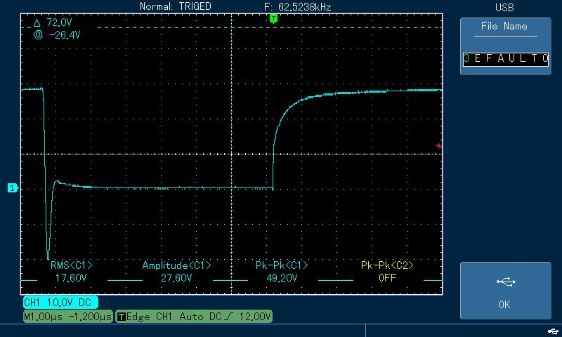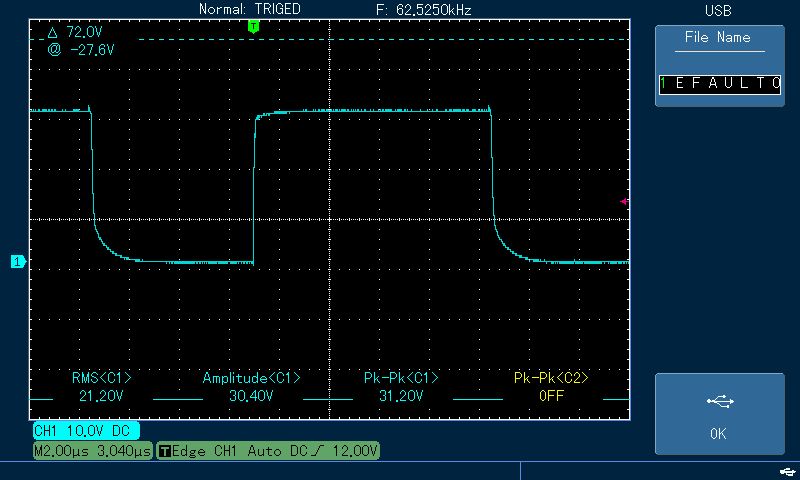 Ich bin einen Schritt weitergekommen. Es lag am Netztteil. Ich habe jetzt einen potentialtrennenden DC DC Wandler verwendet. Mit 1k sieht es nun perfekt aus. Allerdings mit 62k Herz beim Abschalten nicht mehr obwohl das Gatesignal bei der fallenden Flanke sauber aussieht. Wenn das Gatesignal passt müsste doch auch der ITGBT ein sauberes Rechtecksignal liefern !?