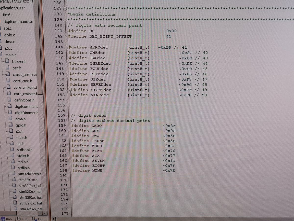 Yalu X. schrieb:> Dirk B. schrieb:> Hast du schon mal versucht, die Literale als unsigned zu definieren?> z.B:: ~0x3fU>> Das hat den Wert 4294967232 und passt erst recht nicht in uint8_t.>> Besser (wenn man auf den Cast verzichten möchte):#define ZEROdec (0xBF ^> 0xFF)> #define ZERO (0x3F ^ 0xFF)> // usw.>> Damit werden nur die letzten 8 Bits, auf die es ja schließlich ankommt,> invertiert, und das Ergebnis liegt immer im uint8_t-konformen Bereich> von 0 bis 255.