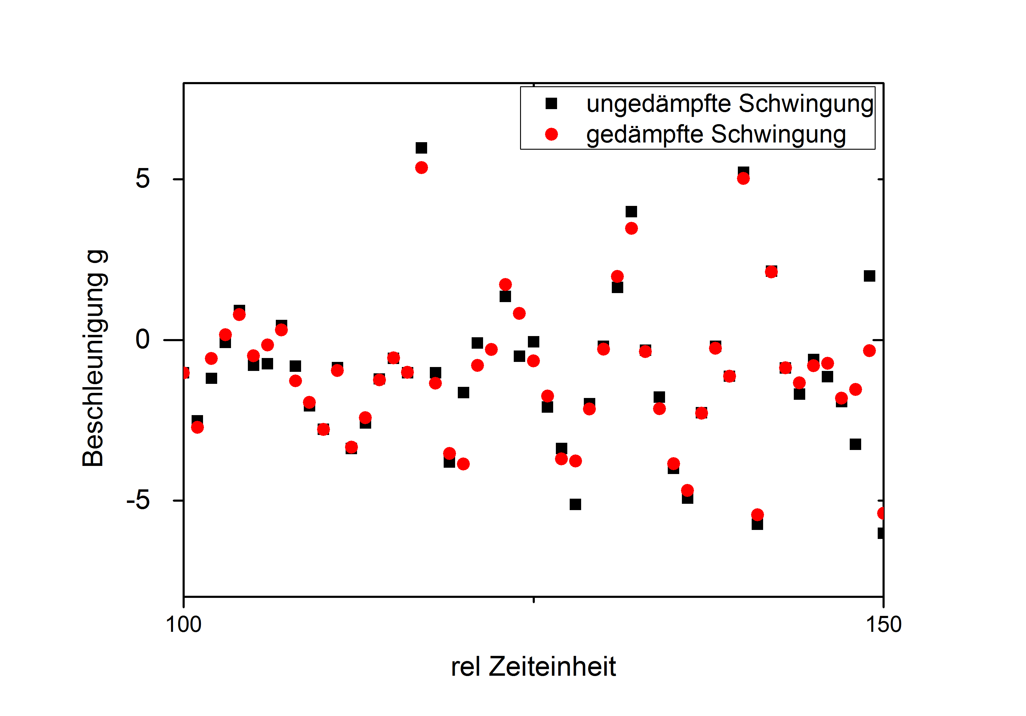 Ich habe ein Setup mit einem Arduino Uno und zwei MMA8452Q Beschleunigungssensoren. Ich will damit eine vergleichende Messung anstellen. Nur scheint mein Setup nicht ausreichend leistungsstark. Oben ist eine Beispielmessung gezeigt mit beiden Sensorsignalen. Ich gebe ein eine Schwingung auf beide Sensoren, und bei einen der beiden sollte eine geringere Amplitude ankommen, da dieser nur eine gedämpfte Schwingung erfährt. Man erkennt zwar einen Unterschied im Signal, allerdings ist dieser sehr klein. Ich kann zwar etwas mit den Messbereichen spielen 2/4/8g um die Empfindlichkeit zu erhöhen, das reicht mir leider nicht. Gibt es Sensoren dieses Typs, die sagen wir um eine Größenordnung empfindlicher sind? Hat jemand damit Erfahrung? Ich bin auch bereit etwas mehr Geld auszugeben. Aber alle Alternativen die ich finde scheinen in ähnlichen Empfindlichkeitsbereichen zu arbeiten. Außerdem scheint die Zeitauflösung unerwarteter Weise begrenzt. Im Datenblatt war die Rede von 800 Hz Data outputrate. Tatsächlich bekomme ich aber nur wenige Datenpunkte pro Sekunde. Ist hier der begrenzende Faktor der µC und die serielle Schnittstelle? Brauche ich einen µC der zu high speed mode in der Lage ist, würde mir das etwas bringen? Oder schafft man wirklich irgendwie eine Messfrequenz von über 80Hz.
